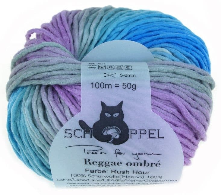 Schoppel-Wolle REGGAE ombre 100% merino wool with fabulous colours in an interesting fleecy, felted texture due to Schoppel-Wolle's exclusive 'Rasta' spinning technology - wonderfully light and soft.